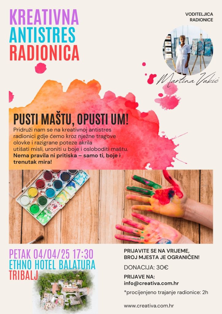 radionice Kako izgledaju naše radionice i šta tamo radimo Dođete, donesete dobru volju i radoznalost, Mi donesemo sav materijal i pribor koji ćemo koristiti. Na svakoj radionici imamo drugu temu onog što ćemo izrađivati. Radionica traje oko 2 sata. Dozvolite da Vas iznenadimo! sljedeće radionice 04.04.2025. u 17:30 Hotel Balatura Tribalj prijavi se ovdje ovako je to bilo na nekim prošlim radionicama...